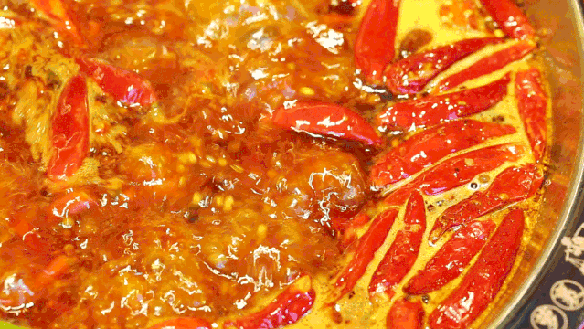 一片片牛肉投入辣锅沸煮,