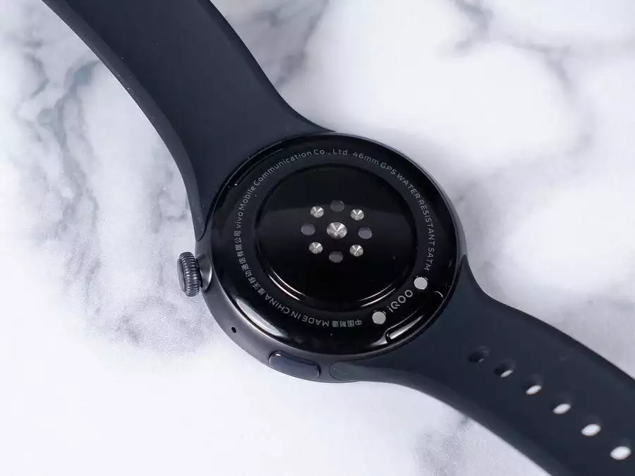 iQOO Watch采用了黑色外观设计。圆形表盘,直径约46.1mm,表盘厚度约11.3mm。在外观上,iQOO Watch与同为vivo旗下的vivo WATCH 3比较相像。