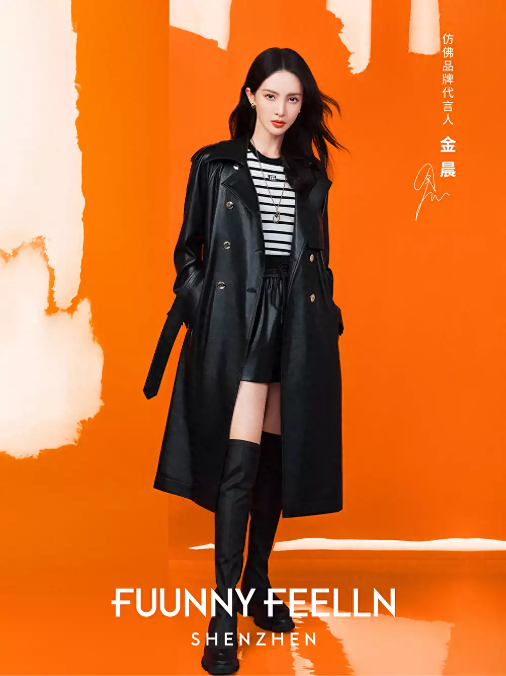 FUUNNY FEELLN(FF仿佛)诞生于深圳,是赢家时尚集团旗下的女装品牌,自成立起便一直关注当代女性生活方式,洞察女性思想变化的本质。以“现代、独立、自由、梦想的深圳女孩”为原型,选用“仿佛橙”作为灵魂色,并将“酷飒”的年轻基因融入品牌DNA,打造酷飒女孩风格,为向往自由的当代独立女性,实现年轻率性、独具一格的着装方式。2023年10月17日,正式官宣金晨为品牌代言人,携手开启酷飒新篇。