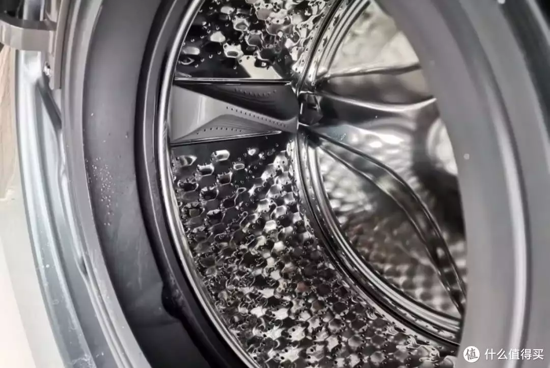 干衣机为直径580mm的超大内筒,筒深40mm,内筒中心采用了锥形帽防缠绕设计。洗衣机则为直径520mm的内筒,筒深32mm,筒壁采用了蓝宝石凸起结构设计,能避免衣物勾丝磨损,且内筒壁上还设置有三道鲸翼式提升筋,提升筋可喷射仿生水流,提升洗衣摔打的洁净效率。