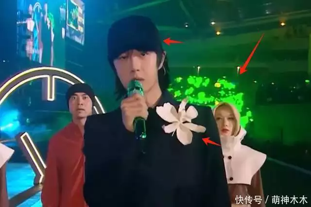 当天晚上王一博带来了新歌《旁观者》的首秀舞台,他穿着一身黑出场,头戴黑色帽子身穿黑色风衣,最重要的是,他胸前还别了一朵白花。