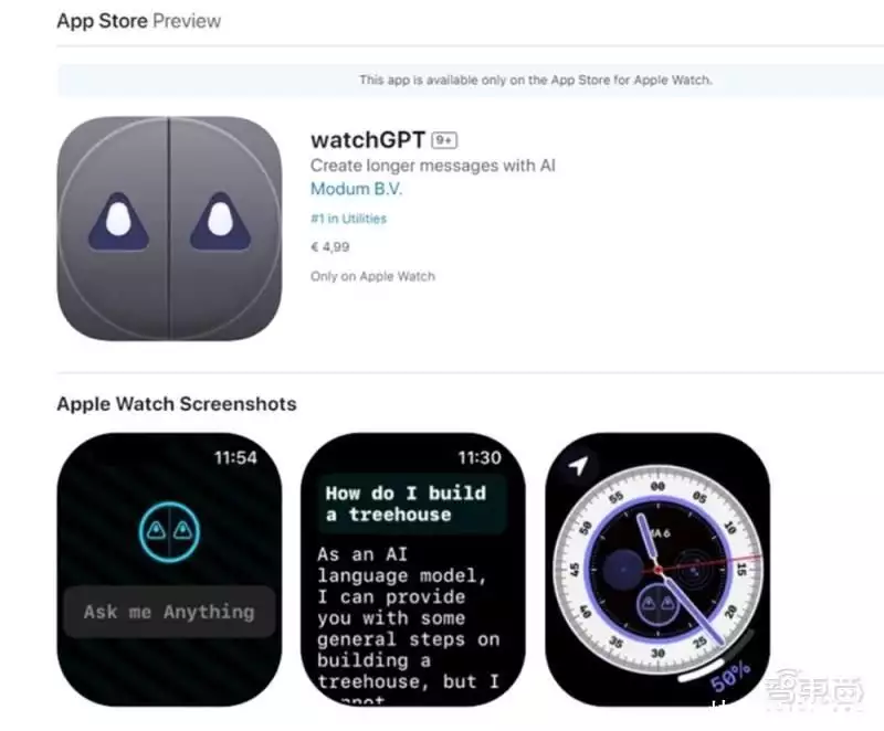 watchGPT在App Store上目前的售价是3.99美元(约28.8人民币)或4.99欧元(约36.7人民币)。
