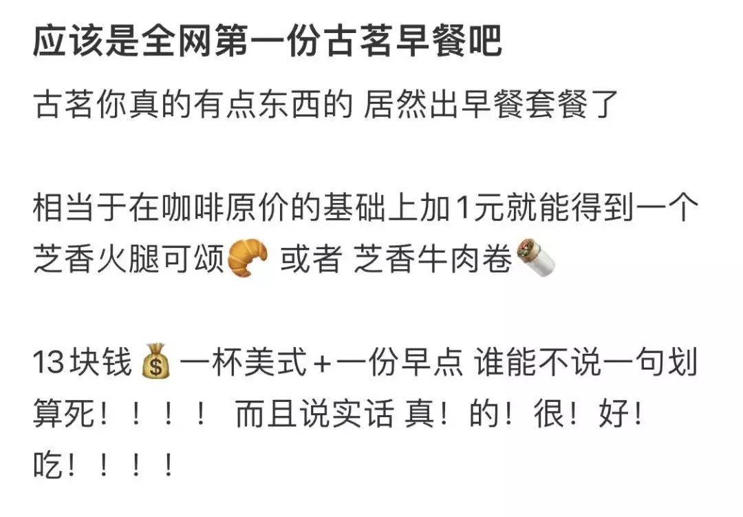 因此对于这个早餐组合,不少消费者直呼划算。