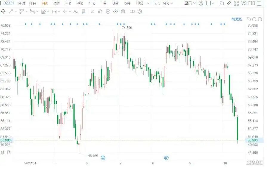 由于这件事引发高度关注,2022年10月17日,港股李宁一度暴跌超 13%,收跌 4.31%,股价逼近今年创下的年内低点48.066港元。10月19日,港股体育用品股下跌,李宁跌超5%。