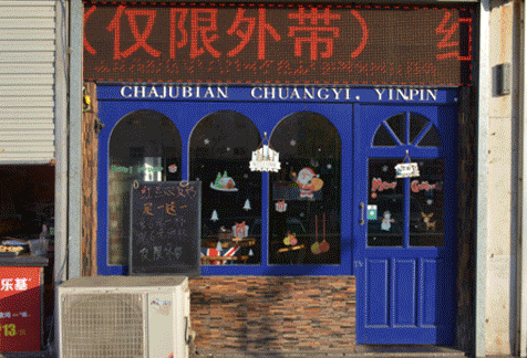 东升园南侧沿街街角第一家是连锁饮品店——茶桔便,