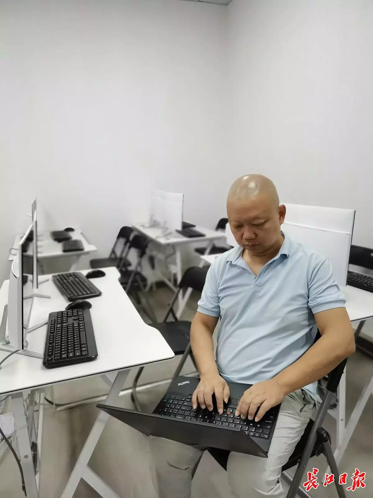 创业压力大,他开始大把掉头发,后来索性以光头形象示人,“打理也方便,工作时不误事”。