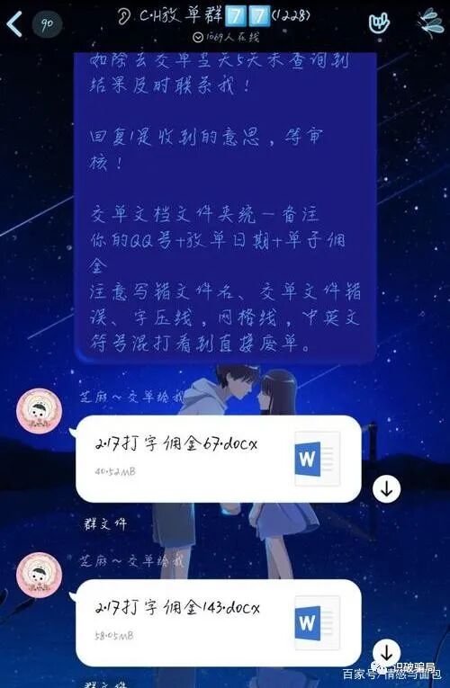 于是,在思考了片刻时候,朋友决定交吧,反正也不算是很多。交完一天就赚回来了。然后在交完之后,就开始被拉入一个群里开始准备接单。培训什么的,也没有,就是讲了讲注意事项。比如打字不能有错别字,如果万字里有超过三个错别字,就算是白打,需要再重新打。