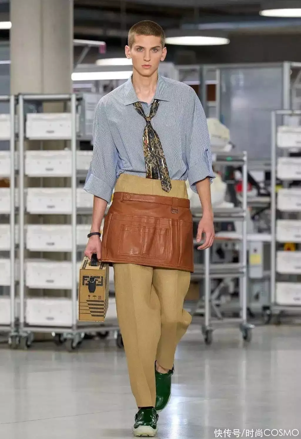 FENDI本季FENDI,Silvia Venturini Fendi带领我们进入佛罗伦萨在托斯卡纳小镇Bagno a Ripoli的新工厂,展示了一个灵感来自工作服的系列。棕褐色皮革打造的口袋围裙、皮尺等元素冲撞上浅浅的蓝色,清爽耐看,就和许光汉一样。
