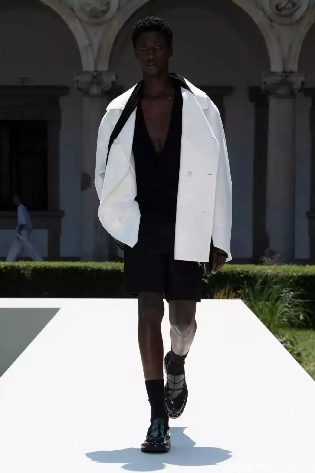Prada“如何让老生常谈的想法变得与众不同?我们着眼于西装和衬衫。这一系列质疑传统惯例、结构和男性气质。我们探索如何让正装剪裁超越固有认知。”—Raf Simons 我们可以发现,在 Prada 2024 春夏系列中,Miuccia Prada 与 Raf Simons 将视线瞄准了春夏季男士衣橱中最为常见的单品:衬衫。标志性的夏威夷衬衫被立体花卉装饰,衬衫的袖子变得更长,模糊了它与外套的区别。