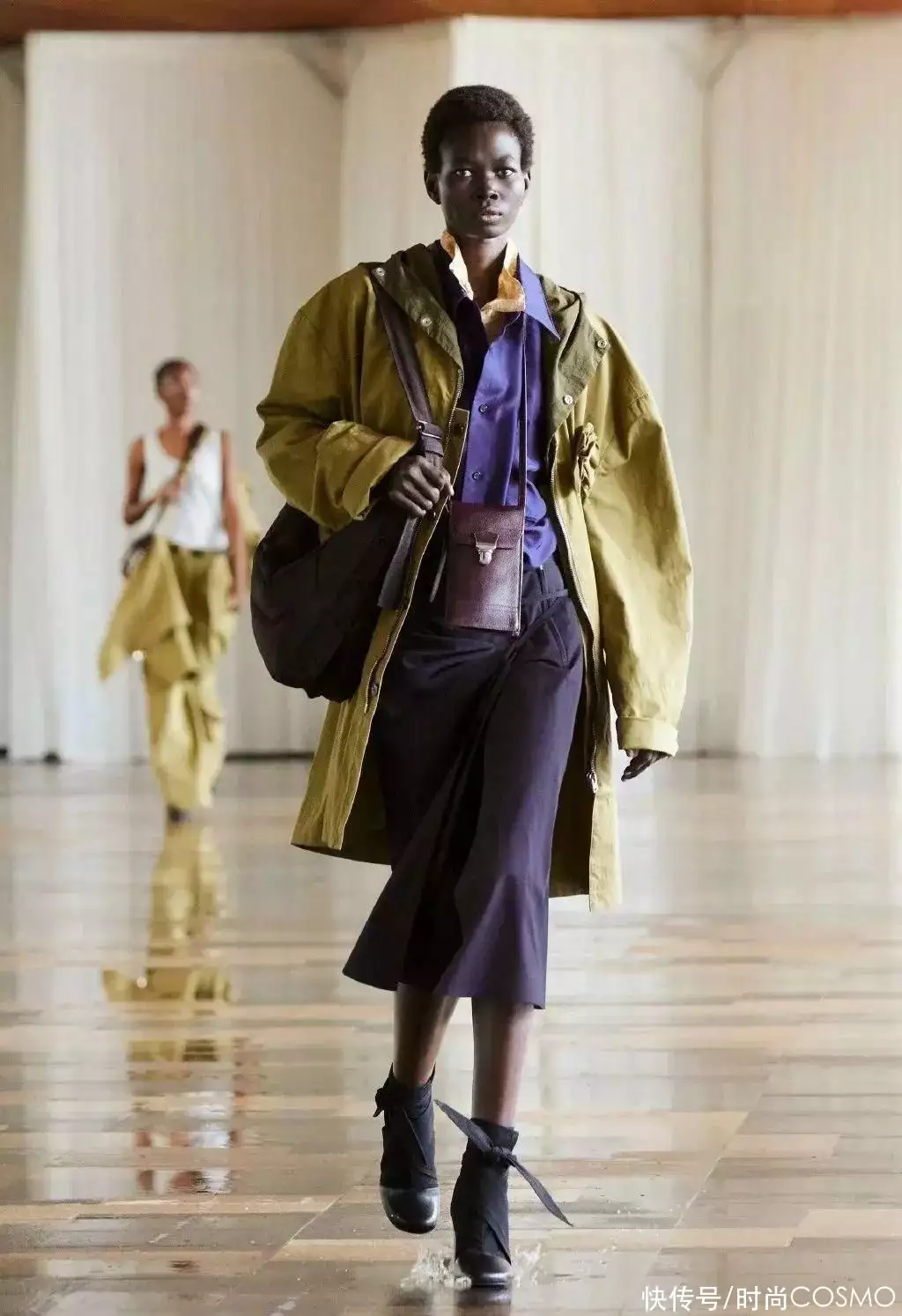 LOEWE本季设计师J.W Anderson继续在设计上天马行空,但实穿感被加强了不少。西装外套、大衣、条纹衬衫、针织Polo衫、两件套开衫、方格纹针织衫、牛仔裤和斜纹布裤贯穿整个系列。
