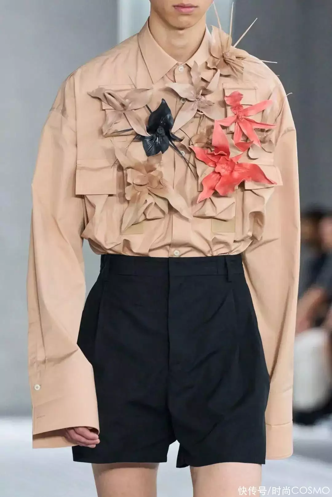 ValentinoValentino 在米兰大学开启The Narratives男装秀。本季,创意总监Pierpaolo Piccioli重新定义对男性的性别认知,模糊性别的风格格外瞩目。“衣服有生命、织物有生命,花朵本身亦是生命力的象征”,各式的花卉元素出现在造型中,花朵像领带一样妆点衬衫的领口,营造亲密而浪漫的氛围,男友衣橱里优雅的花衬衫+1,我很心动。