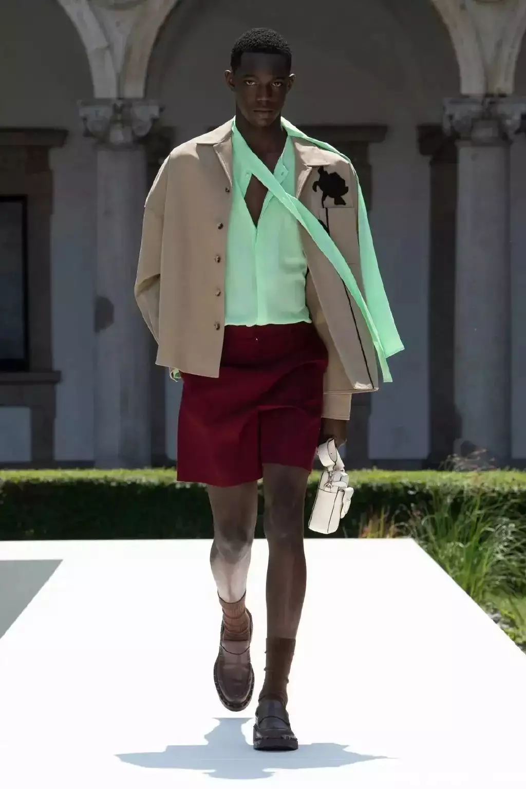 Acne StudiosAcne Studios 2024春夏男装系列,以“盛大旅行( Grand Tour)”为主题构成新季衣橱,其灵感来源于当代的观光旅行者。本季色彩灵感来源于威尼斯布拉诺岛上色彩鲜艳的房屋,墨蓝色、黑色和棕色与番茄橙、婴儿粉和草绿色等大胆明亮的色调并列呈现,这样撞色的调色盘创造出了意想不到的活力组合。彩色多巴胺穿搭不就有画面了吗?