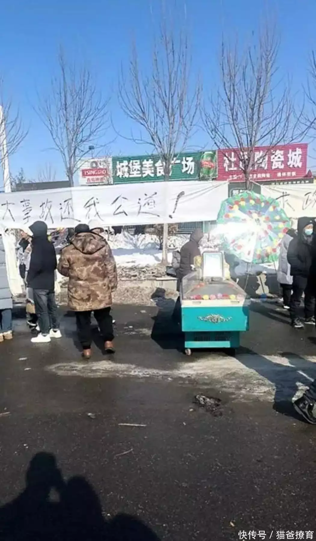 有些部分人在事发饭店现场拍摄了一些照片。只见逝者家属已经在饭店墙上挂上了白色的横幅,上面写着还我公道的字样。另有恒温棺也放在饭店门外,这一幕让人感到十分悲凉。虽然说任何人都不愿发生这样的事情,但是家饭店一定是出现了重大的失误和安全隐患。