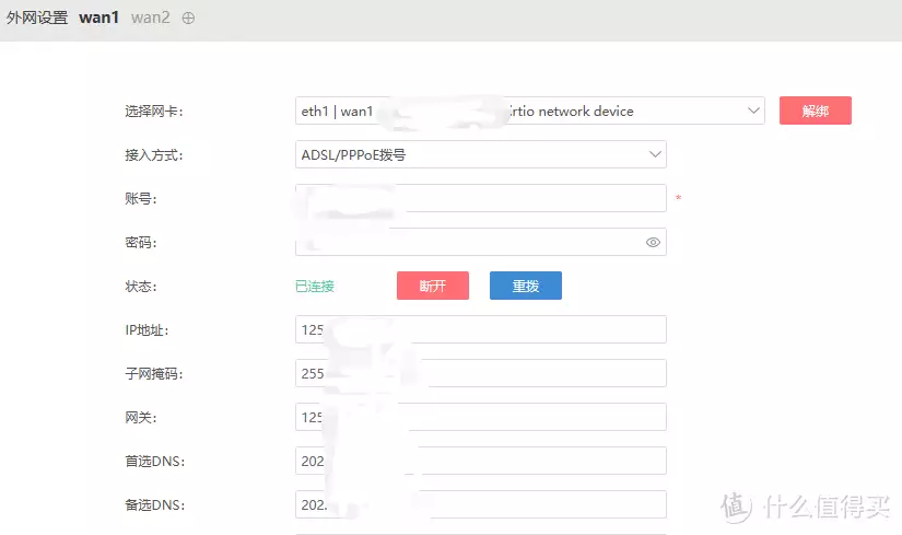 拨号完成以后,查看路由器上的IP地址,一般不是10/172/192.168打头的,问题都不大。这里要注意的是DNS地址,一般直接用供应商给的就行了,当然有自己需求的可以使用其他DNS解析。