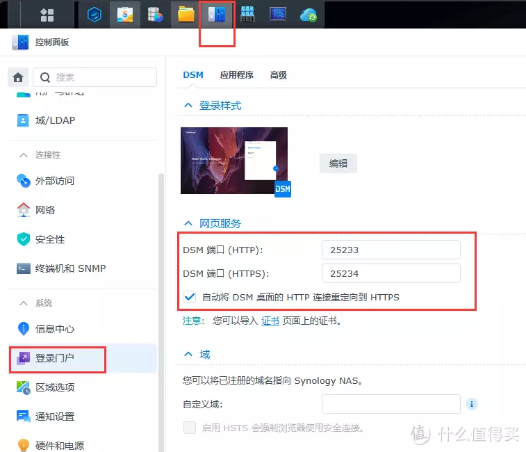 既然把NAS暴露到互联网了,我们还是把群晖默认的5000和5001端口修改了,然后勾上HTTPS重定向,确保使用HTTPS链接