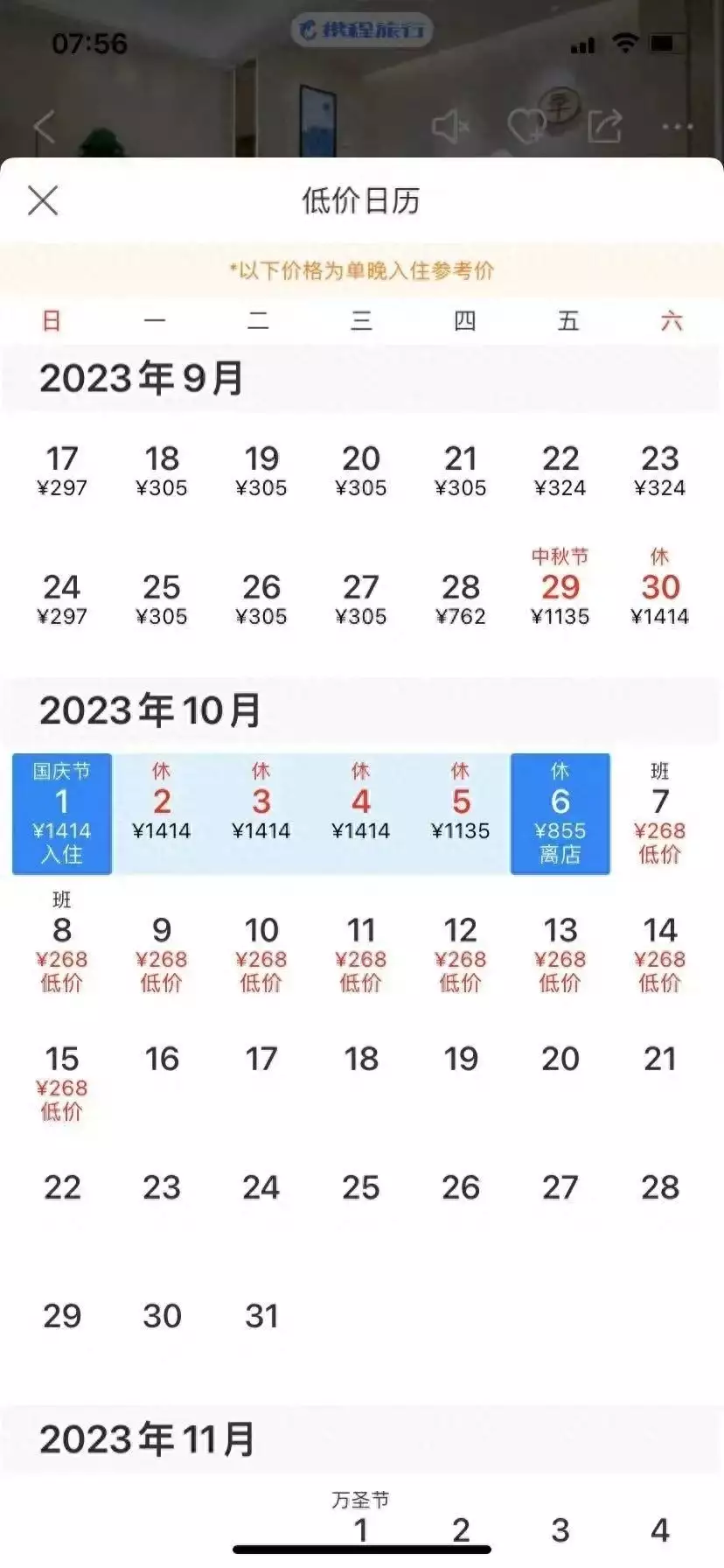 ▲厦门一经济型酒店,有房型国庆期间从297元涨到1414元 图/平台截图