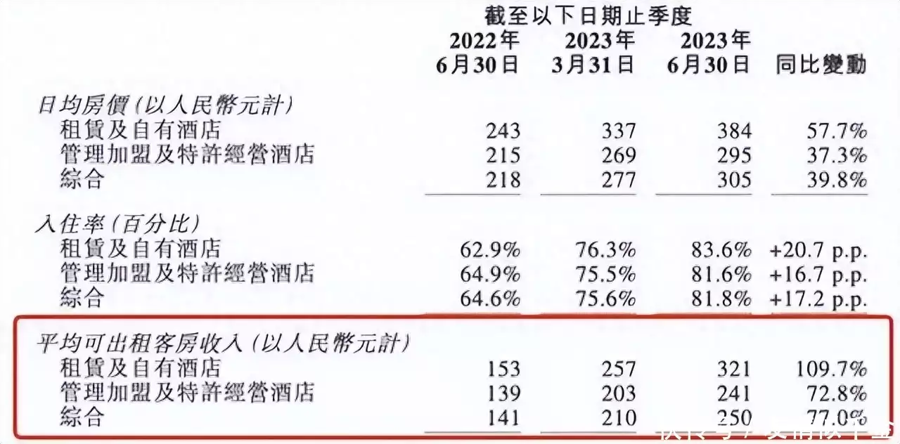 这番操作下来,回血的效果也的确显著。据坐拥汉庭、桔子、全季酒店的华住集团披露的运营数据显示,今年第二季度,华住中国的RevPAR(平均可出租客房收入)大幅回升至2019年水平的121%,背后正是得益于强劲的旅游需求支撑,以及日均房价上涨的推动。