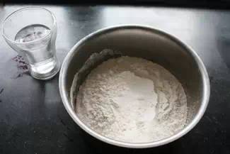 1.在一斤面粉里加入三克左右的盐,兑上凉水和面,面可以和得硬一点