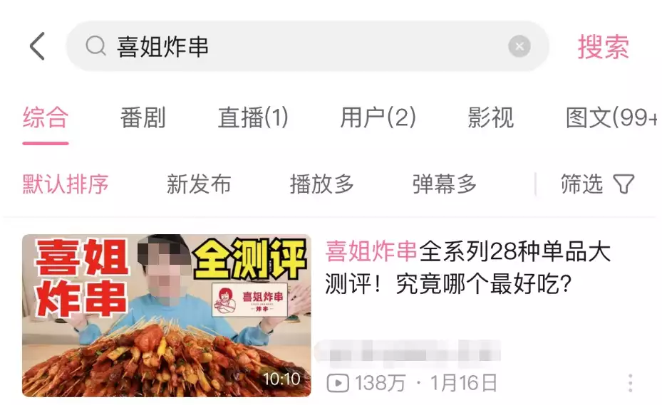 在 B站,喜姐炸串的一条测评视频,播放量就能达到 138 万。