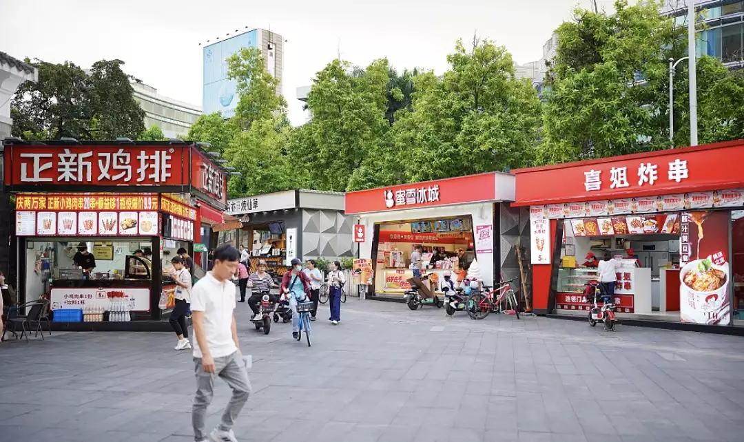 靠着雪王的天然流量,喜姐炸串很多门店都不愁流量。