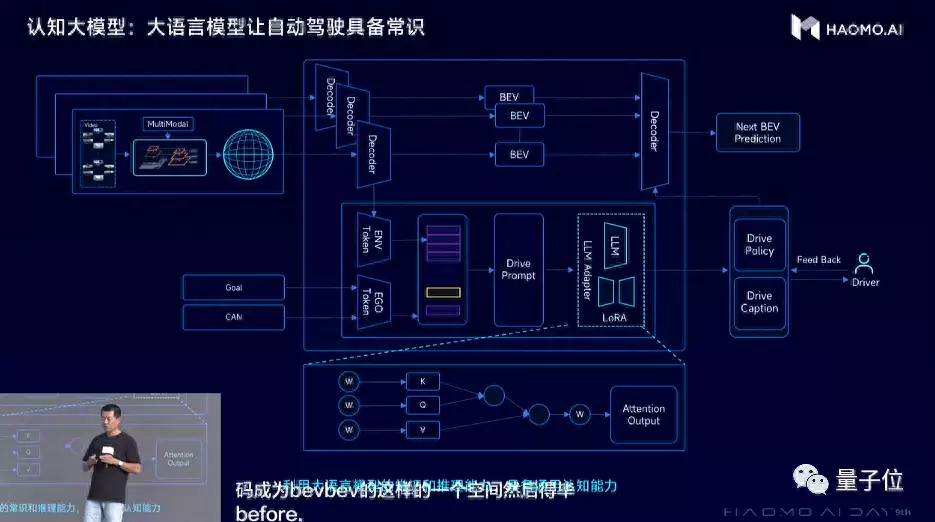 这样,认知大模型除了获得感知大模型看到的物理世界信息之外,也能像老司机一样具备社会常识、知道这个世界各种现象背后的物理知识,从而像老司机一样驾驶。