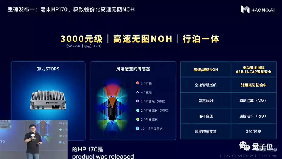 HP170,成本3000元级“极致性价比”智驾硬件方案,但其实在行业平均水平中已经实现了高阶的功能能体验。实现高速上和城市快速路上的NOH功能,以及自主泊车能力,而且比常见的量产方案更近一步。
