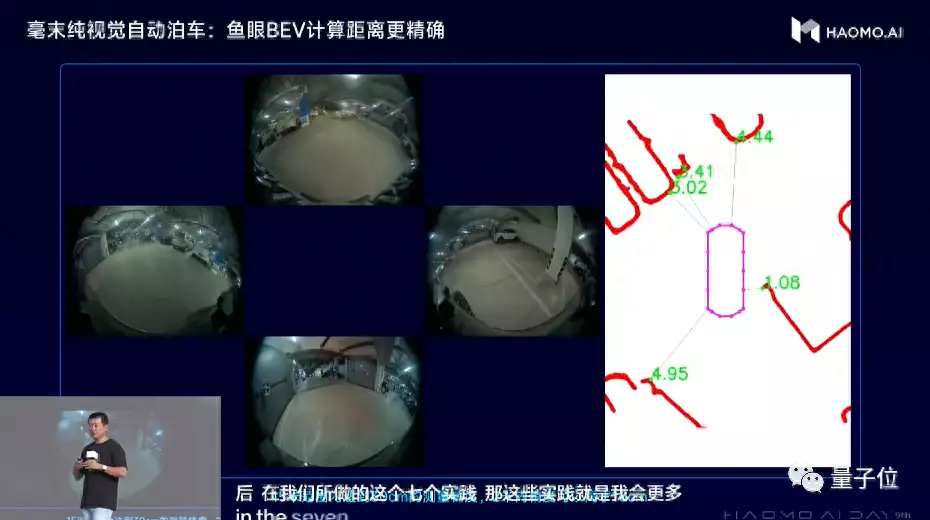 比如将视觉感知能力引入到泊车场景中,并结合视觉BEV的感知框架,使毫末视觉感知模型使用鱼眼相机可以识别墙、柱子、车辆等各类型的边界轮廓,形成360度的全视野动态感知,可以做到在15米范围内达到30cm的测量精度,2米内精度可以高于10cm。这样的精度可实现用视觉取代USS,从而进一步降低整体智驾方案成本。