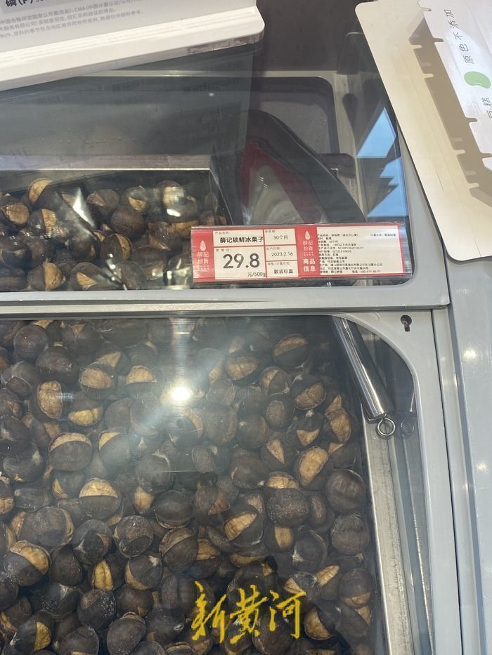 走进薛记炒货店,醒目处可以看到放置着的冰箱,冰箱内是标价29.8元一斤的薛记锁鲜冰栗子。王兵曾是薛记栗子的忠实粉丝,在他眼里,“这栗子跟别的不一样,又软又糯。”12月2日下午,王兵跟往常一样,又在薛记炒货里先是转了一圈,而后称了一斤栗子,他一边在收银台结账,一边询问店员“你们这是冷冻后直接烤的?不是鲜栗子炒的?”店员回复他“独有的锁鲜技术,即食加工。”