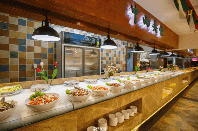 一眼望去,用餐环境宽阔、整洁、明亮,