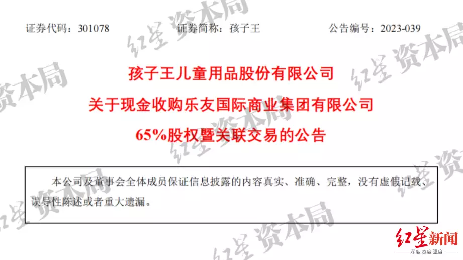 关于此次收购乐友国际,孩子王在公告称,收购举动是为了积极抢抓市场发展机遇,通过收购行业内优质资产,进一步完善市场布局,提升市场占有率和品牌知名度。