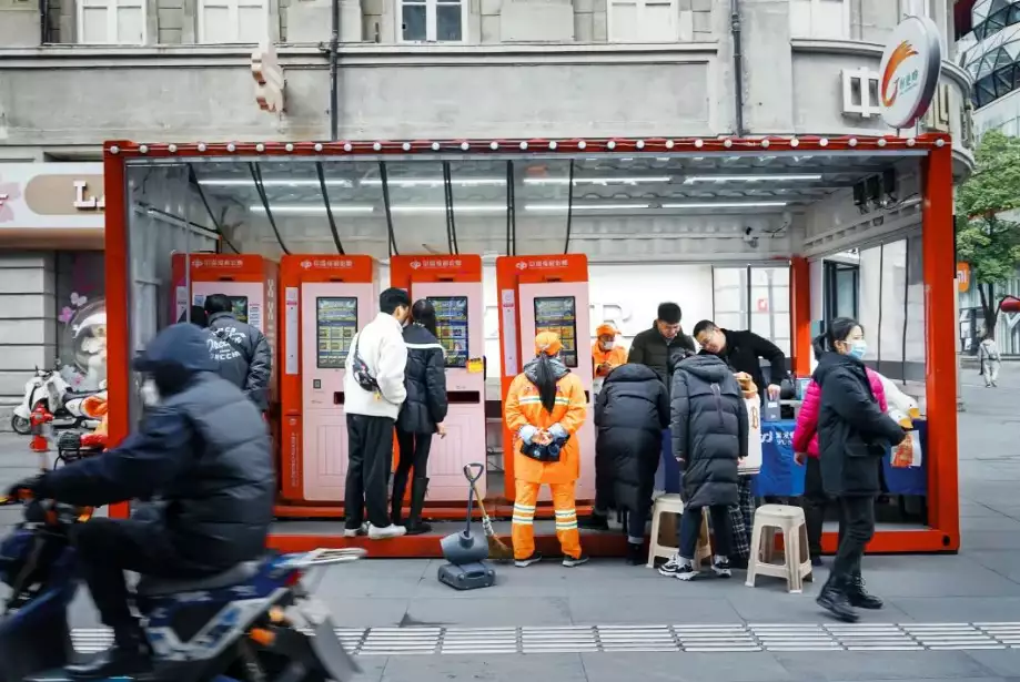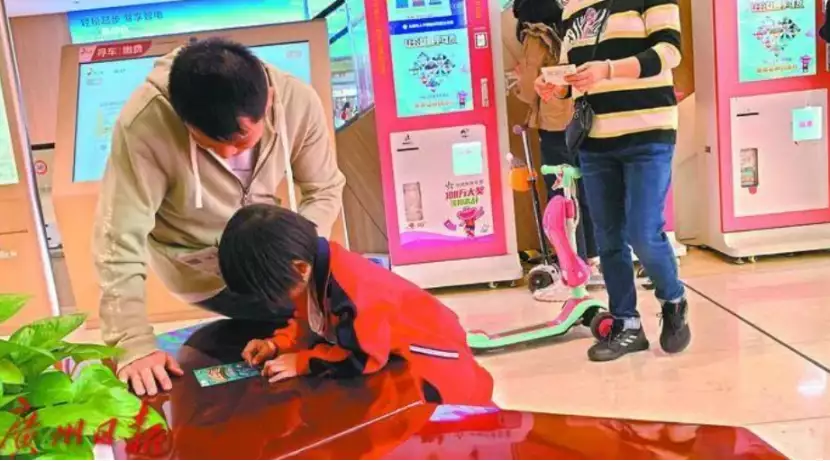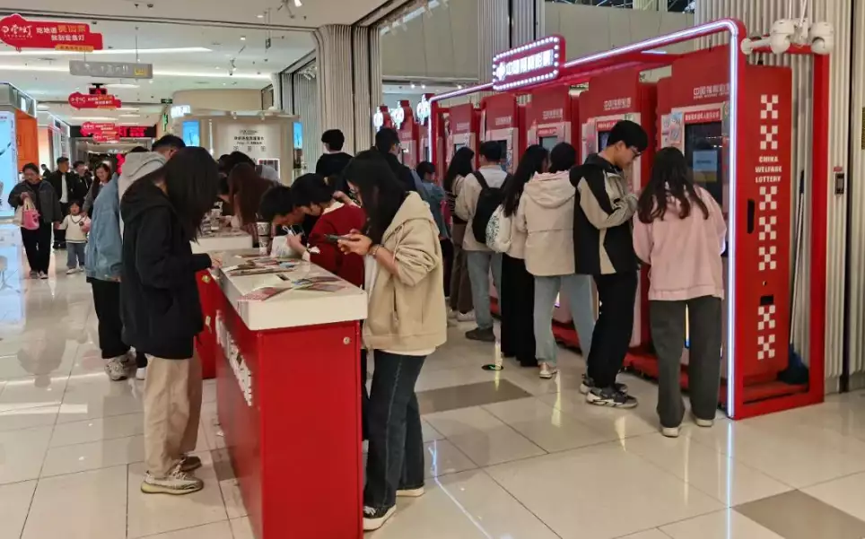 潮玩店附近的自助彩票机,每逢周末就人气高涨。