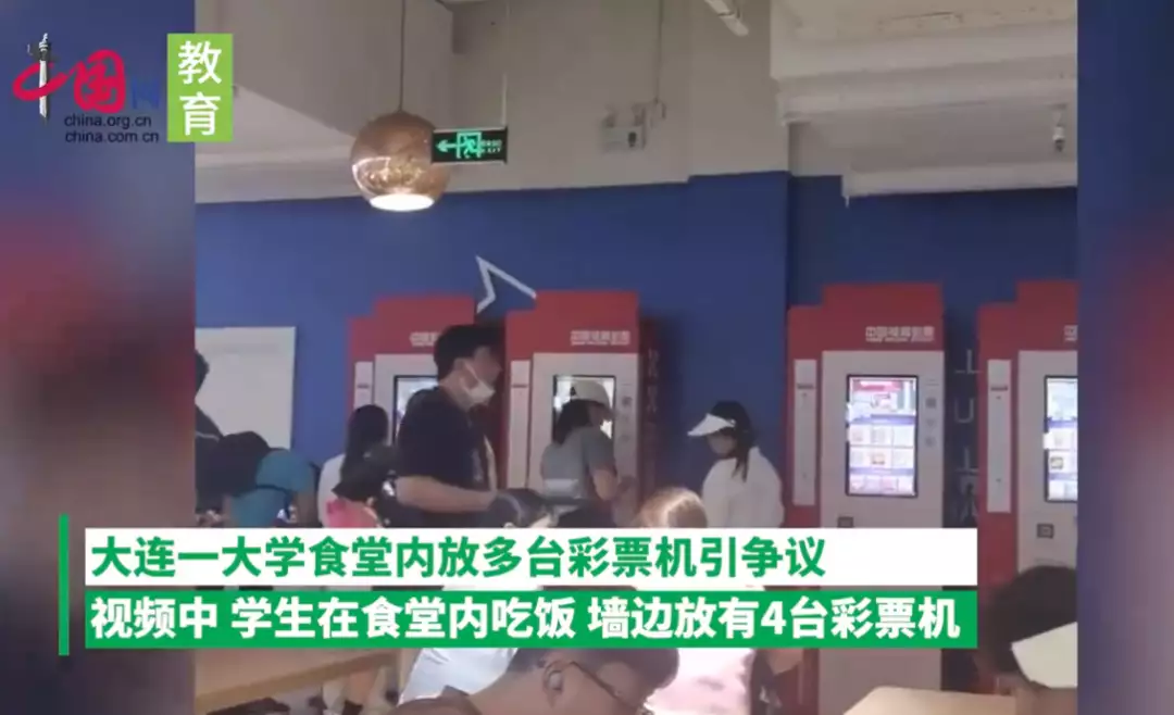 有学生爆料大连某大学食堂新上了一排彩票机,高校内是否能摆放彩票机,迅速被热议。