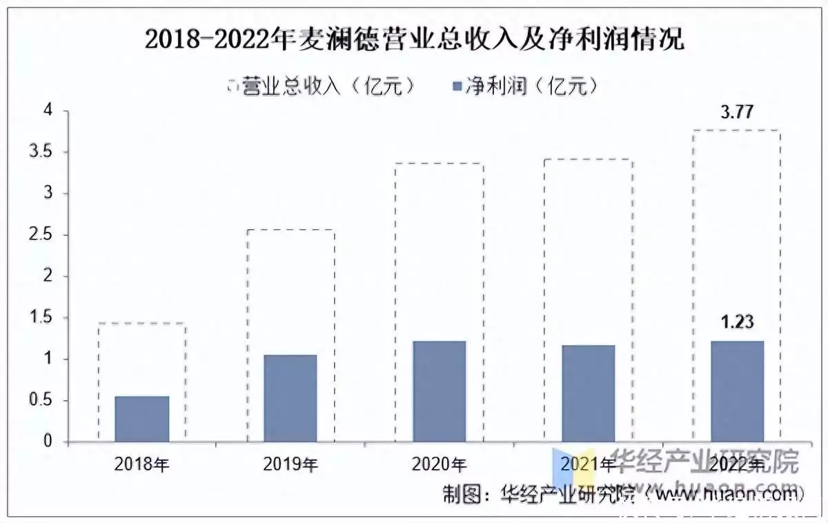 麦澜德成立于2013年,为国内盆底及产后康复领域的先行品牌。从公司经营情况来看,据公司数据披露,2022年麦澜德实现营业总收入3.77亿元,净利润为1.23亿元。业务方面,盆底康复诊疗设备是公司核心收入来源,2021年麦澜德盆底康复诊疗设备营收2.12亿元,占比62.15%。