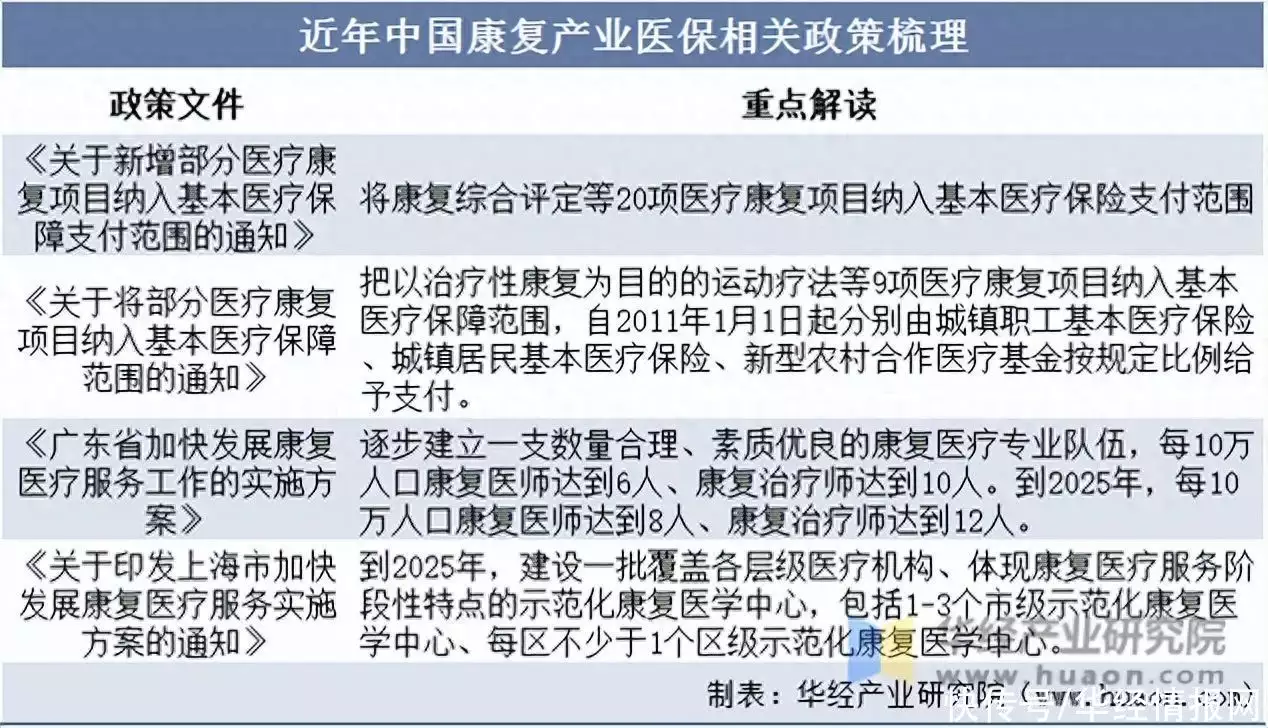 政策支持康复医疗诊疗体系建设,可及性提升带动相关器械前景广阔。自2011年卫生部发文提出建立完善的三级康复医疗体系以来,国家陆续发布相关政策推动康复医疗体系建设,康复医疗器械的配备要求明确、医保支付范围逐步拓宽,为行业奠定确定性较强的长期增长空间。