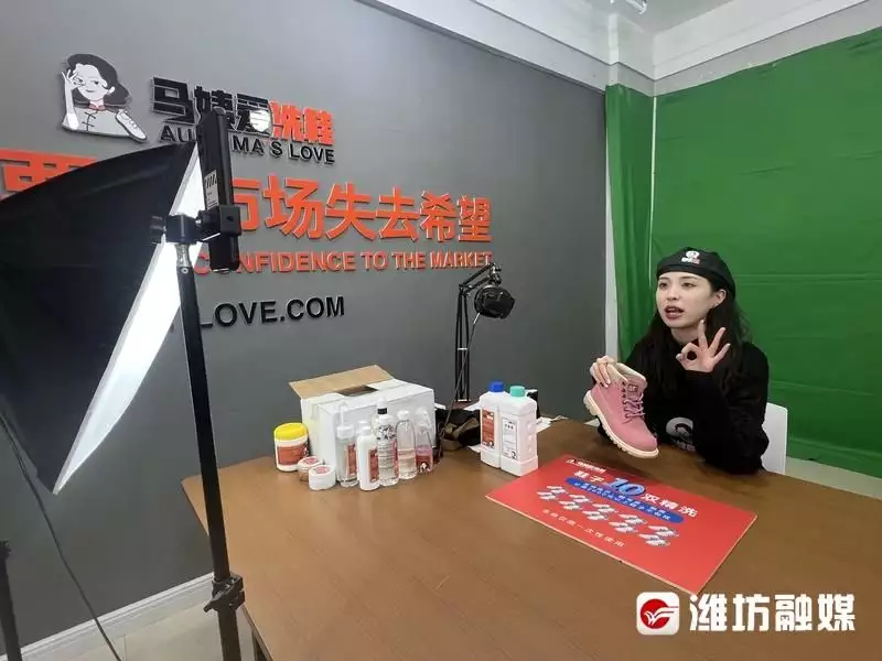 3月17日上午,记者来到位于城区胜利东街与鸢飞路交叉口附近的阳光100城市广场,见到了刘小禄和他的品牌团队。现场一片忙碌景象,主播正在直播间内直播,工作人员则在一旁整理订单。“隔壁是实训展厅,整个洗鞋流程一目了然,前来加盟的商户经过学习之后可现场进行实训。”刘小禄对记者说。实训展厅分为洗刷区、清理区、烘干区、展示区等区域,分工明确,干净整洁。