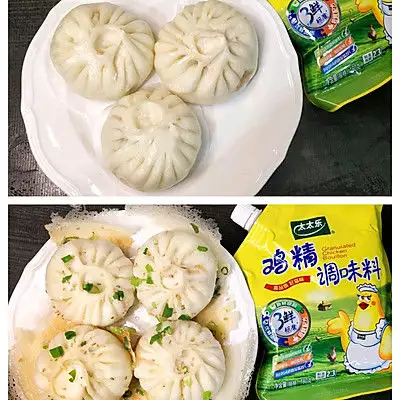 11、蒸的包子和煎的包子,蒸的包子面皮松软,内馅轻爽,煎的包子底部很脆,内馅味道更浓郁,家里娃喜欢吃水煎包