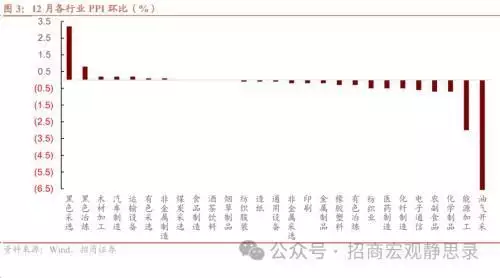 总的来说,12月PPI同比的止跌回升主要与基数下降有关,结构上除了黑色金属表现突出、石化行业明显偏弱,其余多数行业仍然处于环比持平或小幅负增的环境里。