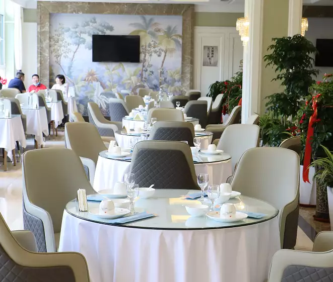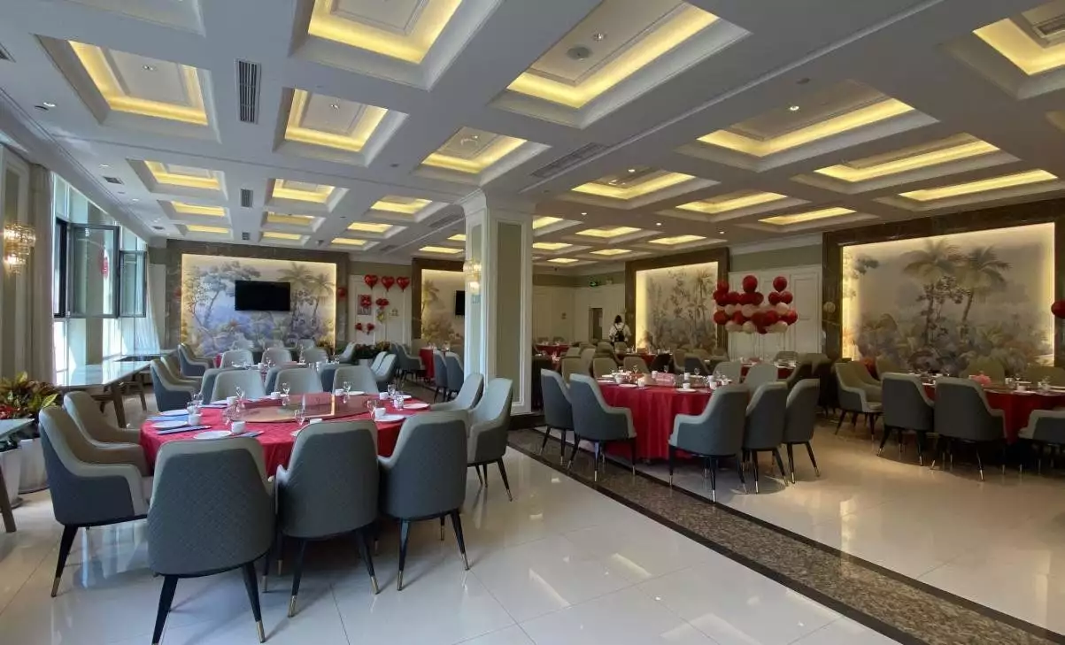 新中式软装设计,氛围感十足,店内共计可以容纳550余人。一层设有24桌散台,2-5层共设有40个包间。