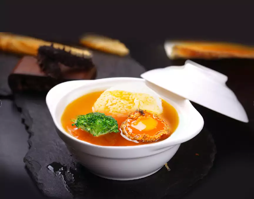 精选渤海湾5个头大鲍鱼,特调高汤文火炖煮数小时,选材优,工艺精,味道佳!