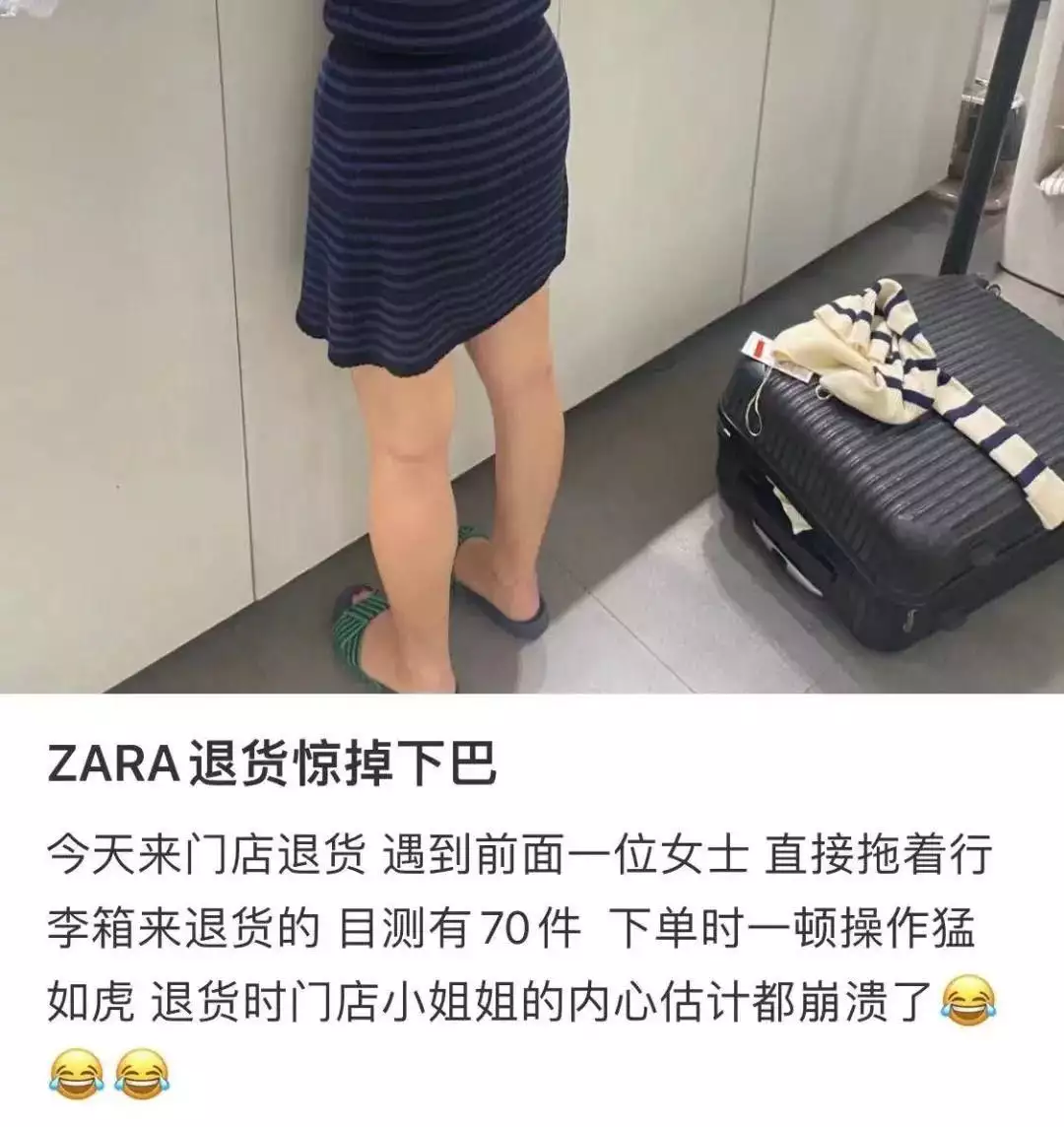 不过,也有网友认为,ZARA此举更多是针对那些恶意退单的人。有网友称,曾经亲眼看到直接拖着行李箱去ZARA线下门店退货的顾客,“目测有70件,下单时一顿操作猛如虎,退货时门店小姐姐的内心估计都崩溃了。”有网友猜测,这种情况不排除买回去打版或测评博主拍完视频再退回的。