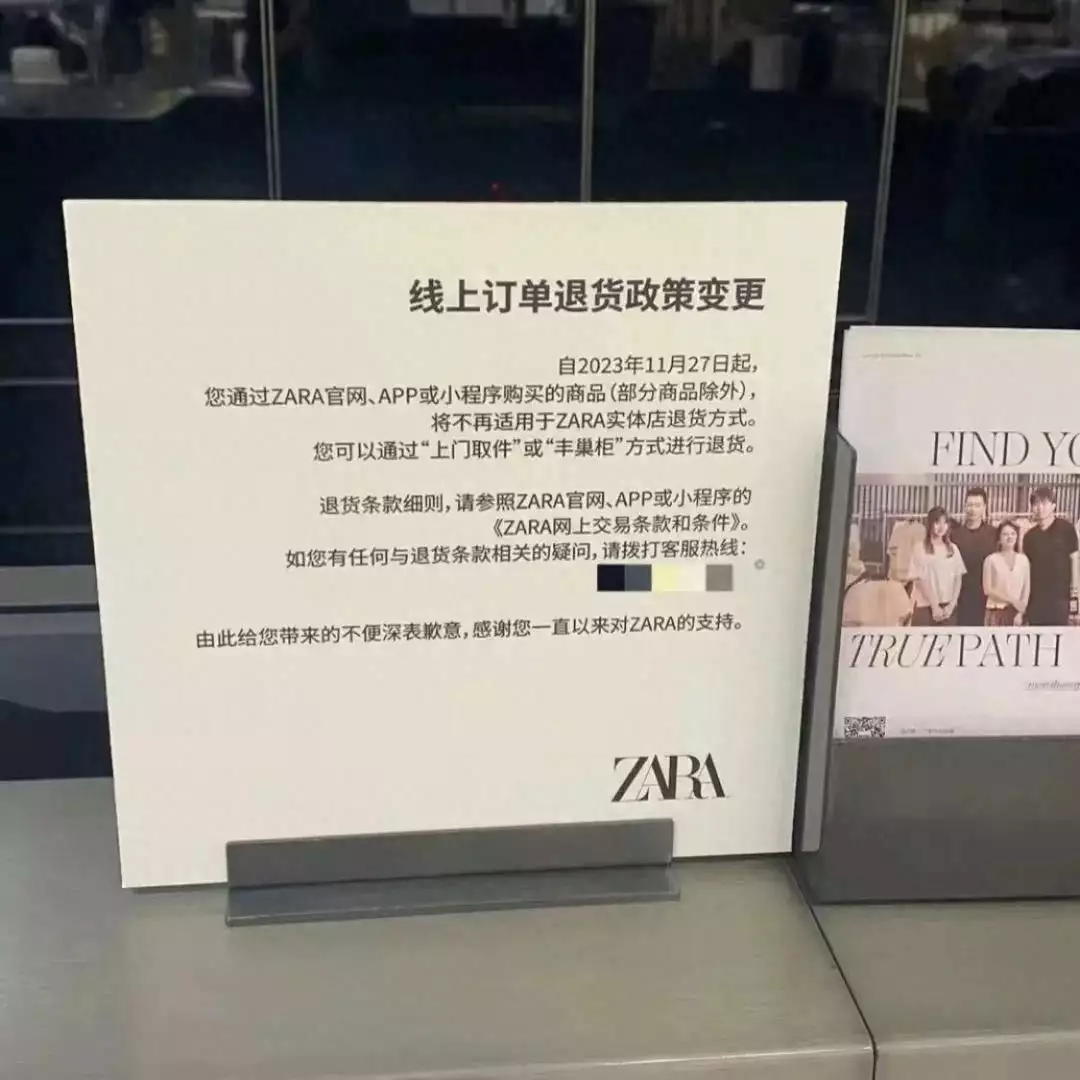 11月16日,有媒体报道,ZARA近日更改了在中国线上的退换货规则。据一些网友称,部分ZARA线下门店一经贴出了通知,自11月27日起来,通过ZARA官网、App或小程序购买的商品(部分商品除外)将不再适用于ZARA实体店退货方式。顾客可以通过“上门取件”或“丰巢柜”方式进行退货。