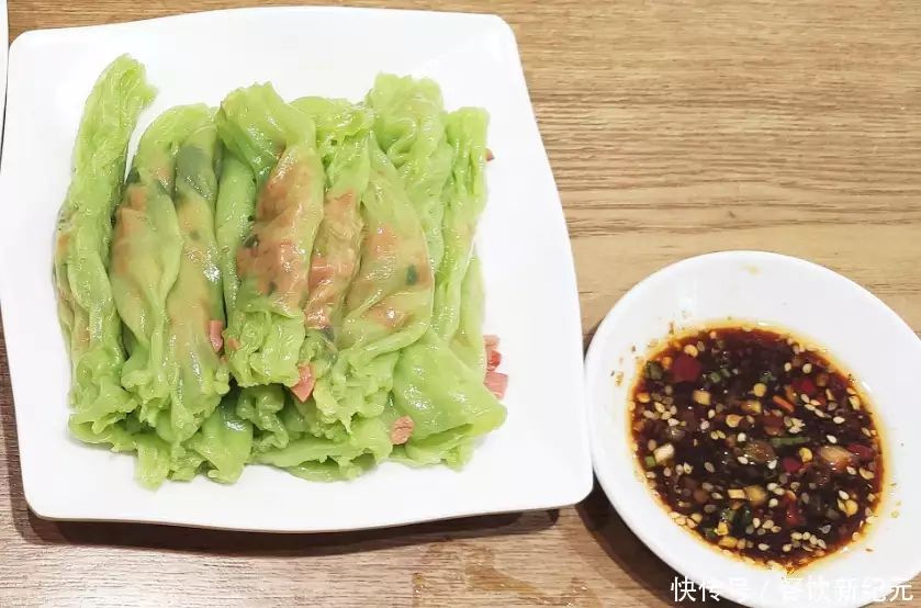 吃的时候配着一小碗辣椒酱油汁一起吃,比广东的肠粉吃起来更美味,而且馅料多达10种以上,口味非常丰富。