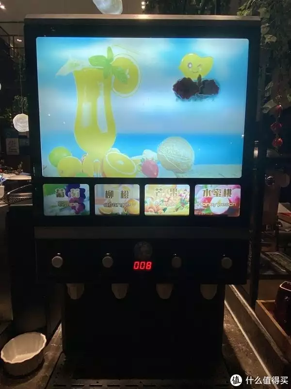 因为我不喝酒不喝茶不喝咖啡,所以能喝的只有果汁汽水了。我选了果汁机里的水蜜桃和葡萄混搭,虽然知道不可能是鲜榨,但这种时候也就凑合喝喝。据同伴说,可乐、雪碧的气不太多。不像饭堂、萨利亚里那种原浆+二氧化碳现调的可乐那么多气。