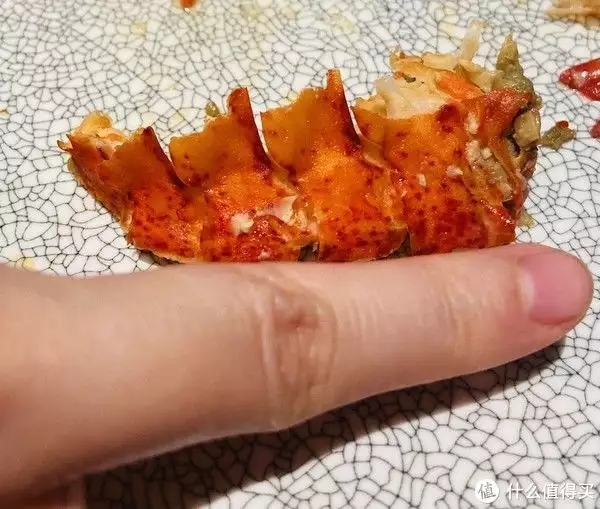 龙虾的头占去约一半的身长,身体的头拆出来大约是一指长。味道有点咸。但是配上芝士香味还可以。