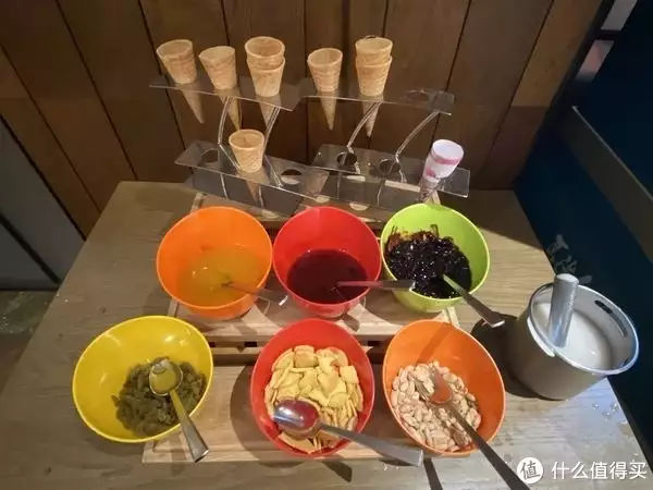 我嫌蛋卷筒不好吃,自己拿了咖啡杯装了点儿冰激凌。味道吧,还行吧。