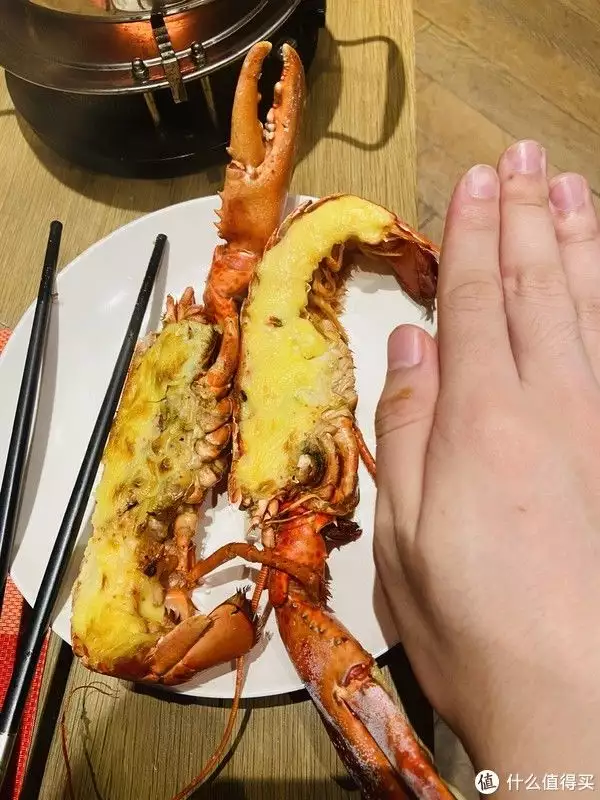 一开始龙虾上来,我并没有觉得什么,只是礼貌性比划一下,拍个照罢了。