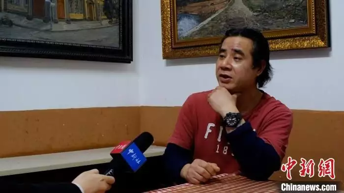 今年51岁的梁神传个子不高,头发飘逸,他既是一名快餐店主,同时也是一名职业画家。自幼喜欢画画的他曾从事电影海报绘制和舞台美术设计工作,先后绘制过大量风景和山水油画作品,并在中国不少美术作品展中获奖。