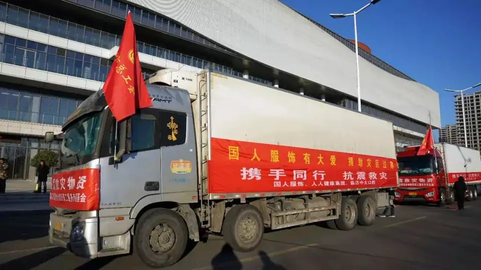 2023年12月22日,国人服饰通过中国职工发展基金会临沂职工专项服务基金捐赠价值100余万元的棉服,紧急运往甘肃、青海地震灾区,为群众送去冬日温暖和“国人”真情。
