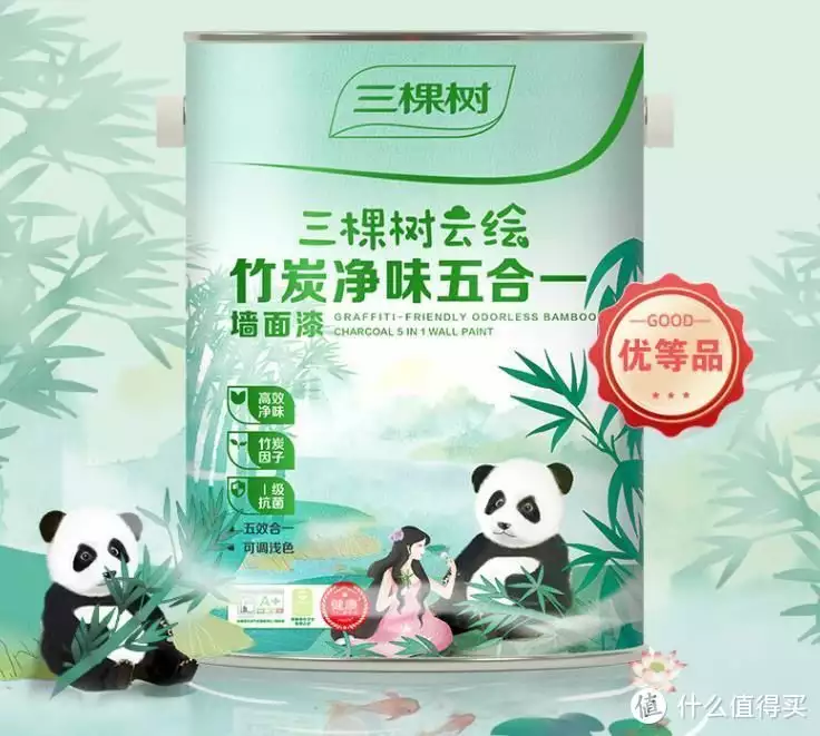 旗下三棵树云绘竹炭五合一墙面漆是一款采用高效净味配方和竹炭因子的内墙乳胶漆,不仅具备耐擦洗、抗碱、防霉等功能,而且能够迅速遮盖墙面瑕疵,不掉屑。许多消费者对其评价极高,认为刷完墙后几乎没有任何味道,颜色纯正,成膜后手感舒适。