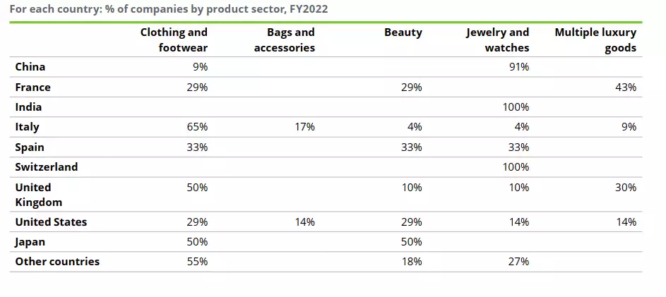不难看出,这些企业大多是垂直一体化的珠宝零售商,仅有Lanvin母公司复朗集团一家是服饰配饰赛道的公司。在德勤选取的其他重点市场中,印度和瑞士的上榜企业均属于珠宝腕表领域,同中国一样,在珠宝消费上占据一定优势。